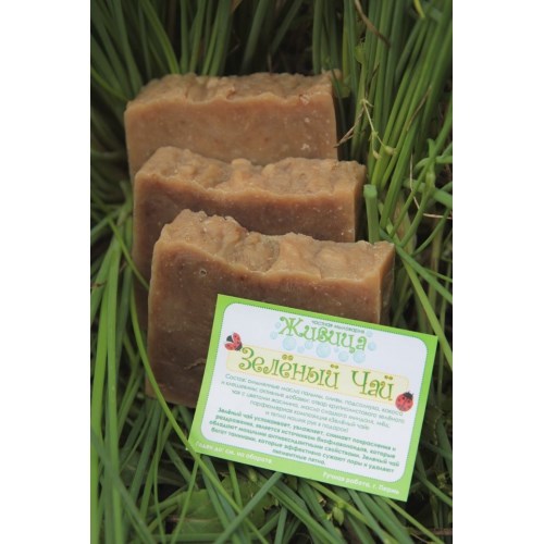 Состав: омыленные масла пальмы, оливы, подсолнуха, кокоса и клещевины; активные добавки: отвар крупнолистового зеленого чая с цветами жасмина, масло сладкого миндаля, мед; парфюмерная композиция «Зеленый чай».