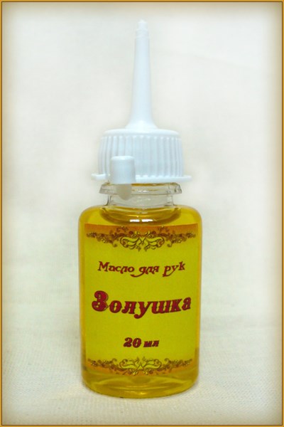 Масло для рук «Золушка» содержит только природные компоненты, бережно питает кожу рук, делая её упругой и эластичной, заживляет трещинки и ранки, омолаживает и укрепляет клеточные мембраны. Прекрасно подходит для ухода за руками при обветривании, шелушении и ожогах. Благоприятно воздействует на ногтевые пластины и кутикулу.
