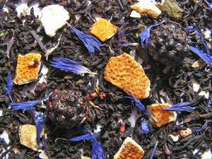 Состав: Чай черный байховый китайский крупнолистовой, цедра апельсина, ягоды и листочки ежевики, кусочки ягод малины, лепестки голубого василька, ароматизаторы натуральные лесные ягоды и сливки