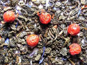 Состав: Чай зеленый байховый китайский крупнолистовой, лепестки сафлора, ягоды красной смородины, лепестки голубого василька, кусочки ягод малины, ароматизаторы натуральные клубника и малина.
