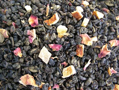Состав: Чай зеленый байховый китайский крупнолистовой, лепестки чайной розы, кусочки папайи, цедра апельсина, ароматизатор идентичный натуральному черимойя